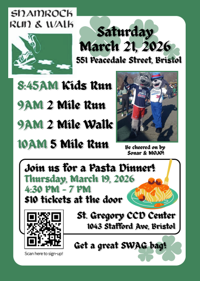 Shamrock Run & Walk Bristol CT takes place on March 21st at Chippens Hill Middle School.