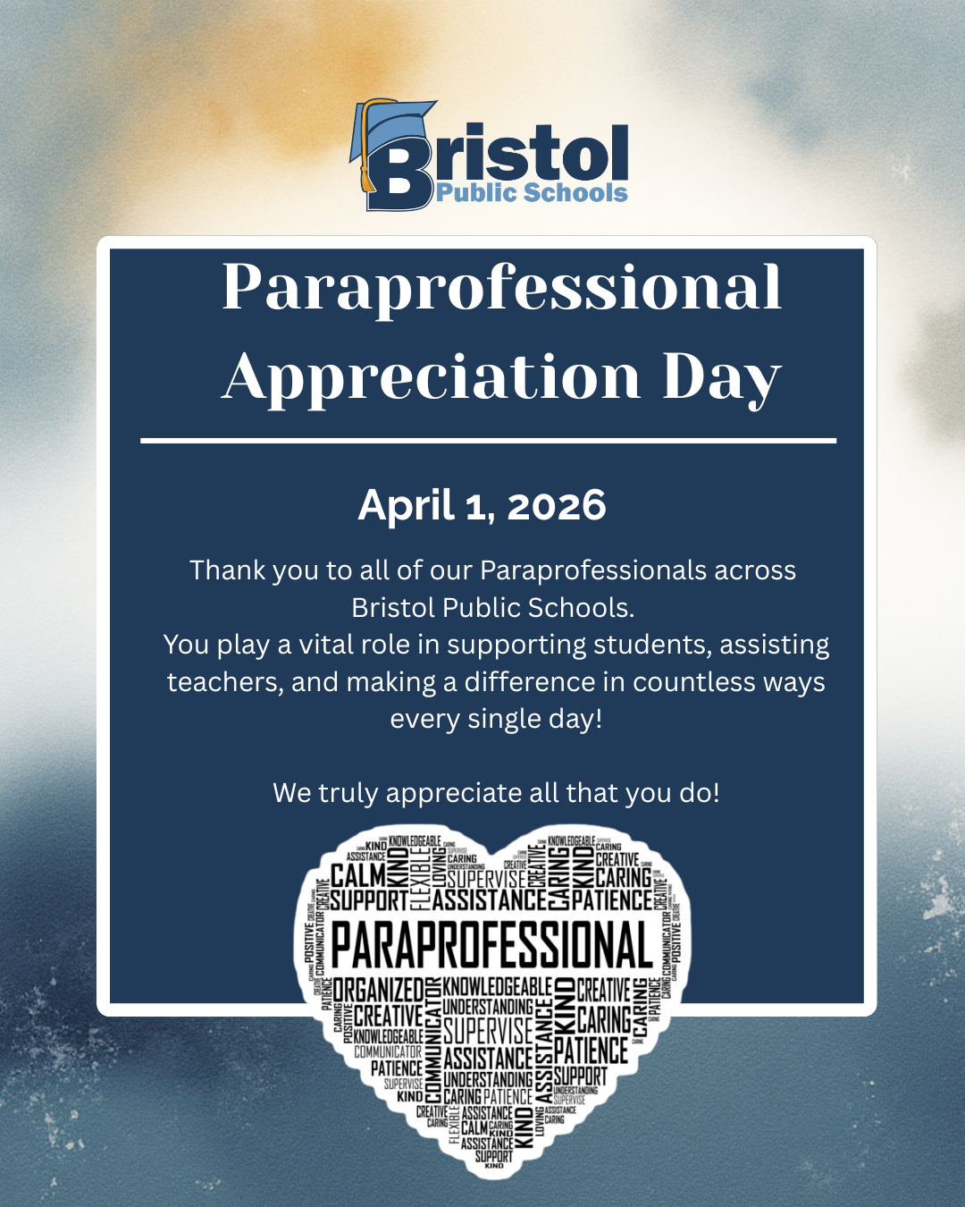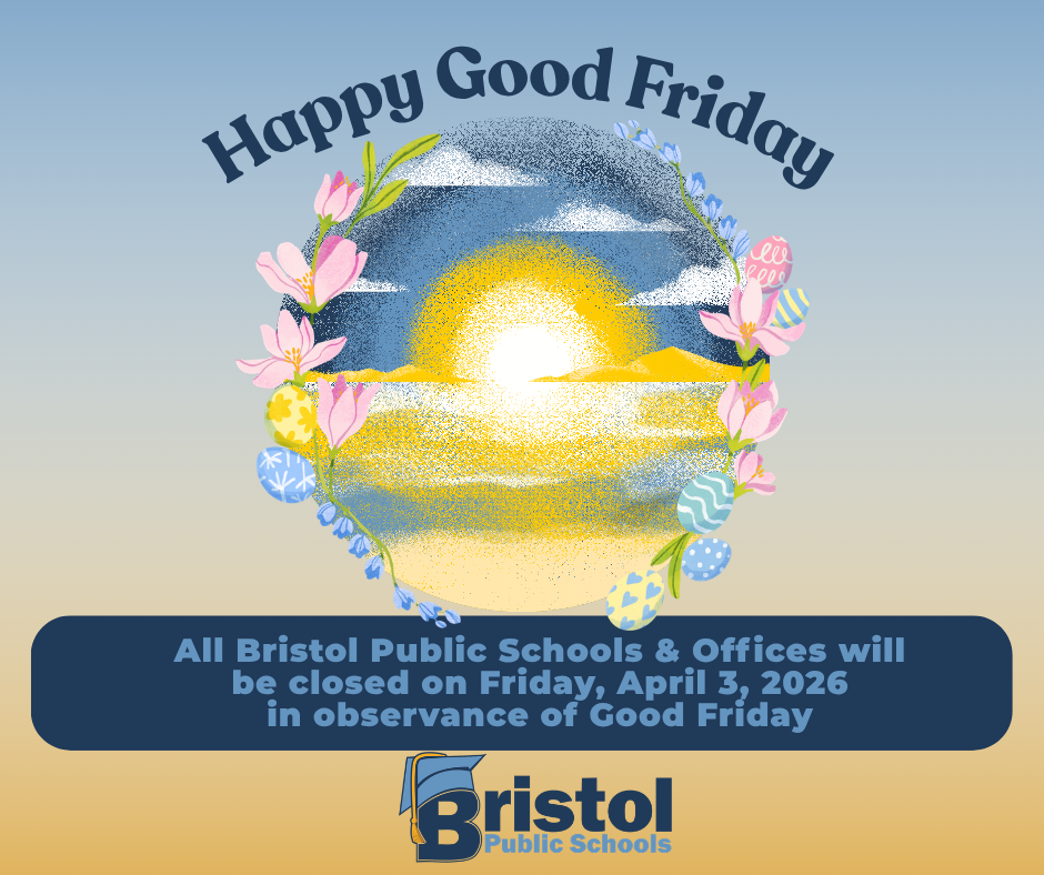 As a reminder, all Bristol Public Schools and Offices will be closed on Friday, April 3, 2026 in observance of Good Friday.