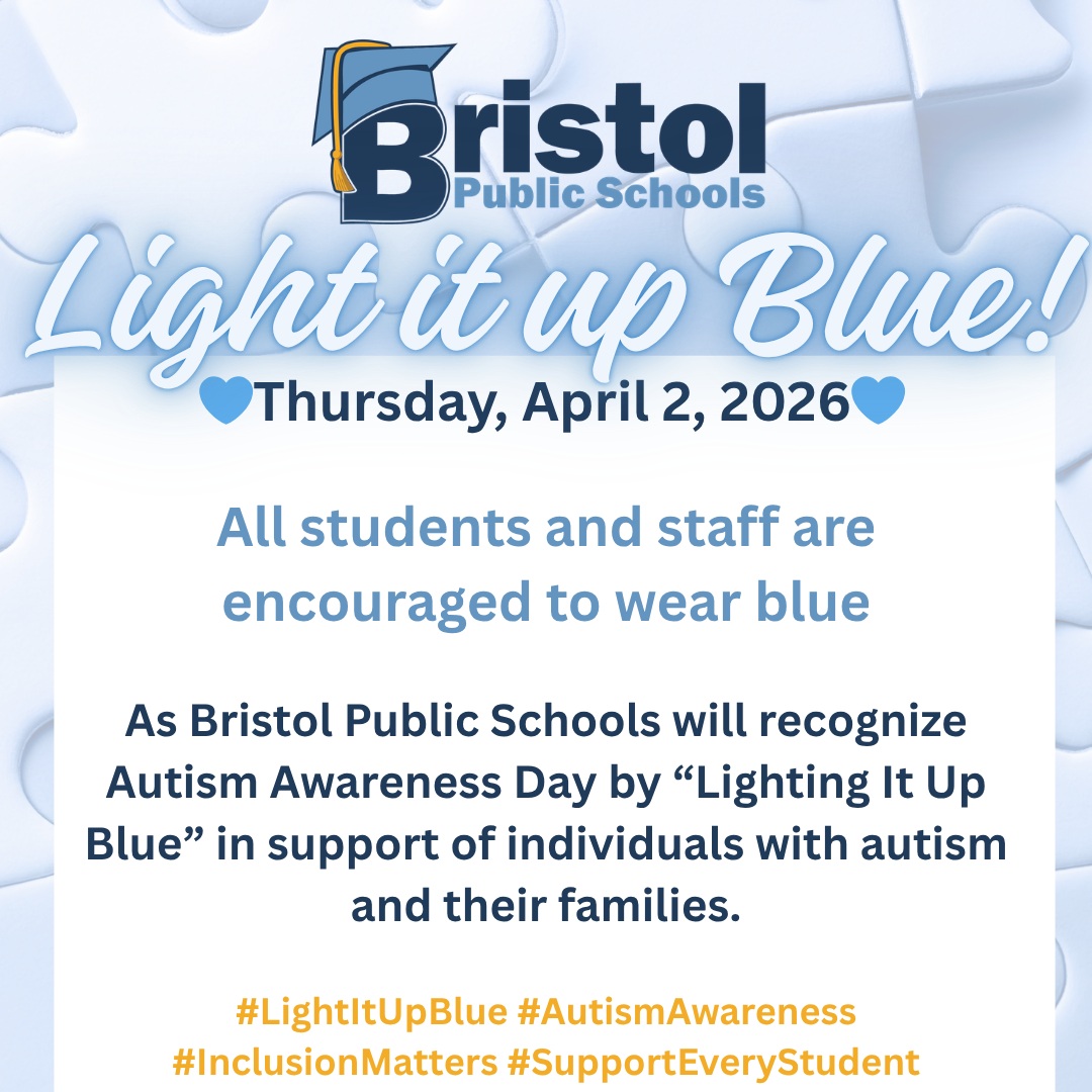 Tomorrow, Thursday, April 2, 2026, all BPS students and staff are encouraged to wear blue to recognize Autism Awareness Day in support of individuals with autism and their families.